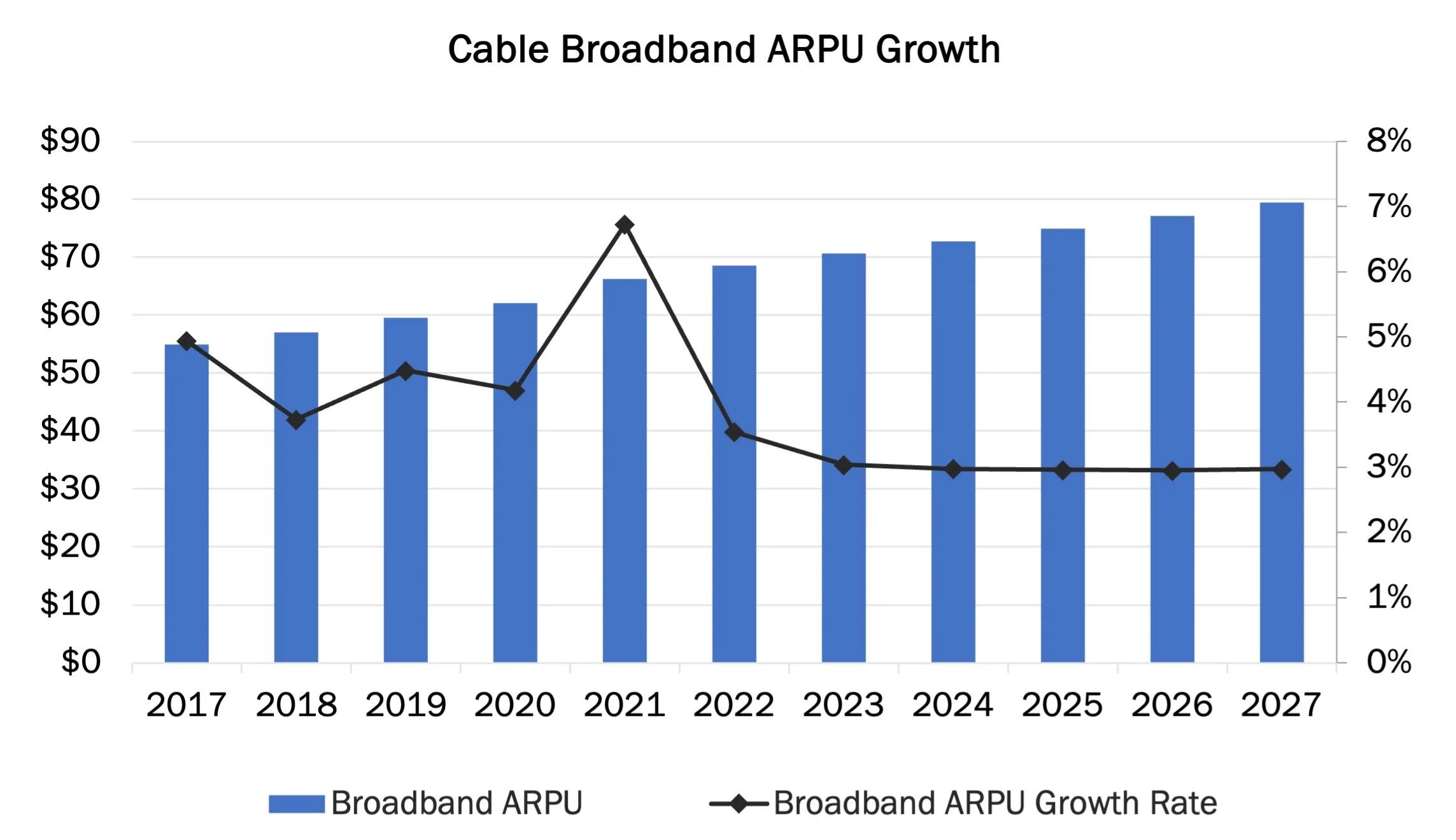 Broadband ARPU and ARPU Growth Rate 2017-2027